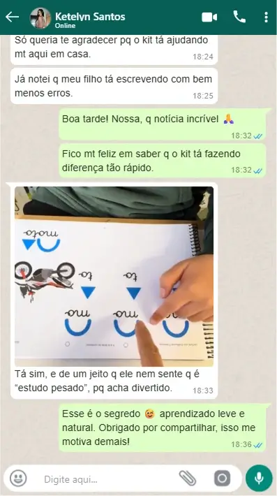 Com o Kit de Grafismo Fonético, seu filho desenvolve o cérebro para aprender a ler com leveza, no tempo dele — e com resultados visíveis em poucos dias.